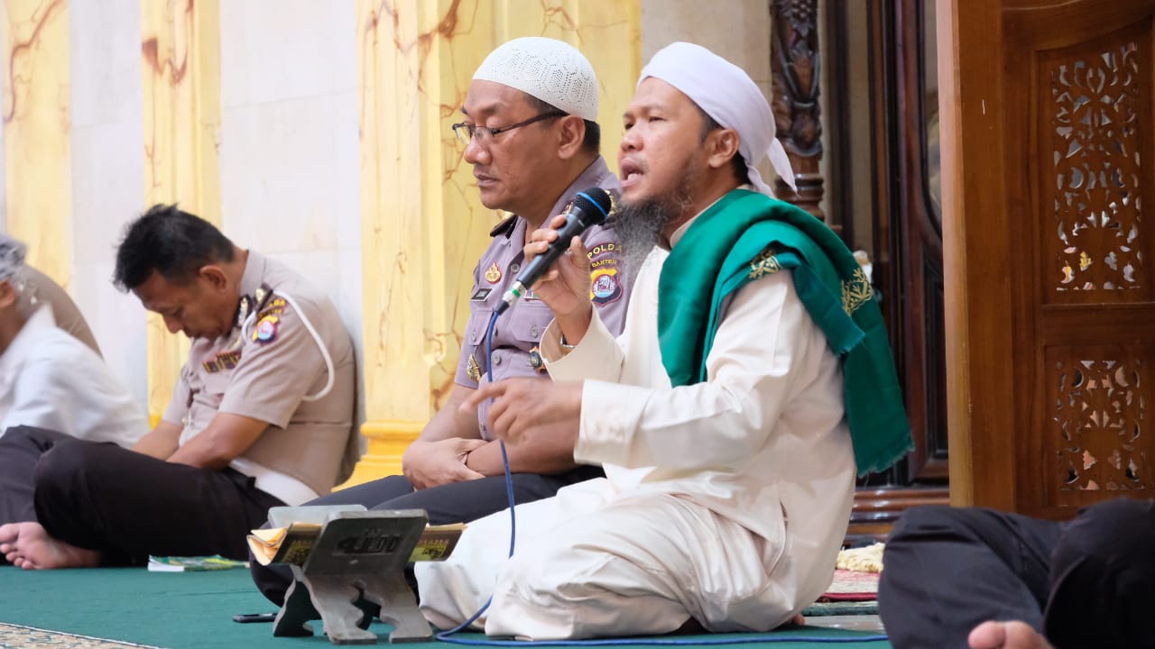 SERANG, harianindonesia.id – Personel Polda Banten mengikuti kegiatan pengajian rutin Pembinaan mental dan rohani di Masjid Baiturrahman Polda Banten, Kamis (10/01/2019). Kegiatan pengajian yang diikuti oleh seluruh personel yang beragama muslim ini diberikan pembinaan rohani pentingnya saling menasehati.