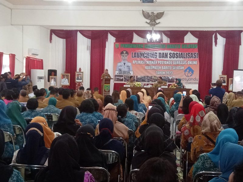 BUNTOK – Launching Aplikasi Layanan Posyandu Berbasis Online, yang diadakan oleh Pemerintah Daerah (Pemda) Kabupaten Barito Selatan (Barsel) di Aula Kantor BAPPEDA Barsel, Jalan Pahlawan Atas, Buntok, Senin (27/02/2023).