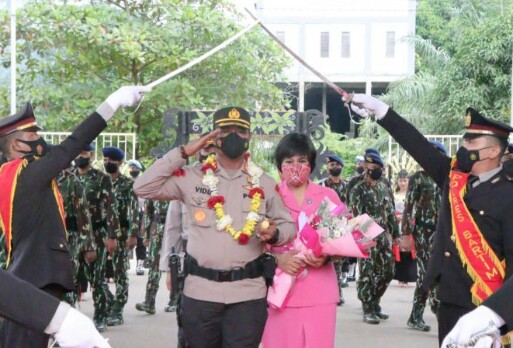 Tamiang Layang – Penyambutan Kapolres Barito Timur (Bartim) Jajaran Polda Kalteng yang baru, AKBP Viddy Dasmasela, S.H., S.I.K. beserta Istri, pada hari Rabu (29/6/2022) pagi.