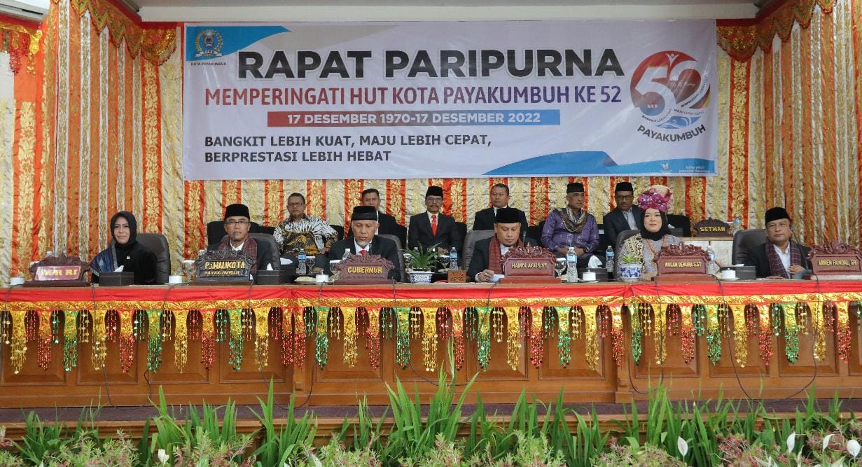 Dalam sambutannya, Ketua DPRD Hamdi Agus menyampaikan rentang sejarah 52 tahun, para tokoh pemimpin Kota Payakumbuh telah berkarya silih berganti, setiap pemerintahan yang menjalankan kekuasaannya telah bekerja keras dan bertekad membangun kota ini ke arah yang jauh lebih baik demi mencapai kesejahteraan masyarakat.