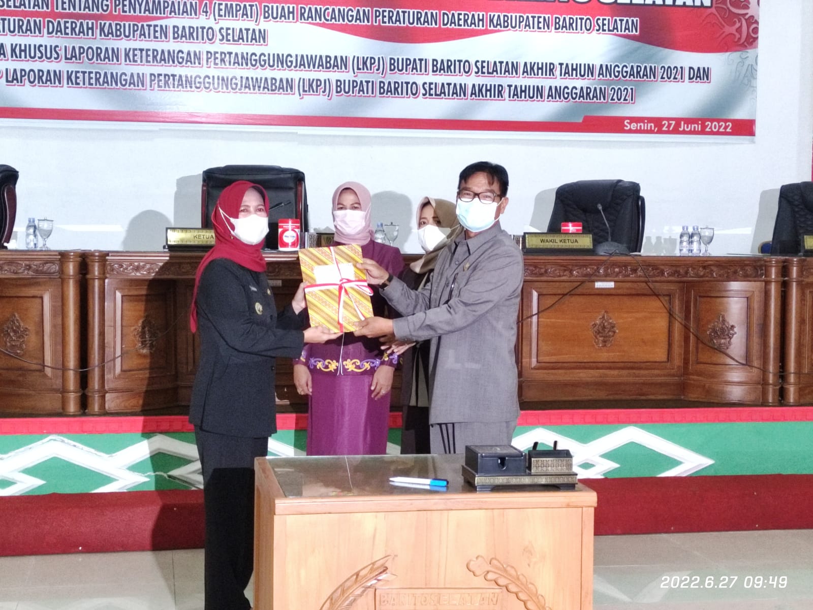 Kemudian dalam kesempatan ini pula, DPRD menyerahkan hasil kerja tim Panitia Khusus (Pansus) dalam pembedahan pembahasan tentang Laporan Keterangan Pertanggungjawaban (LKPJ) Bupati Tahun Anggaran 2021.