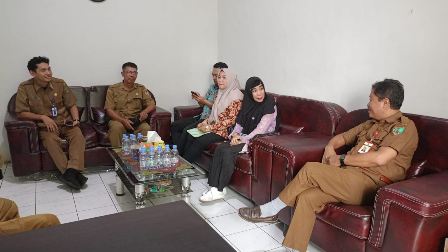 Kedatatangan Kepala Diskominfosantik Barito Timur Dwi Aryanto yang didampingi oleh para pejabat di Bidang E-Goverment Diskominfosantik Barito Timur, tim monitoring dari bidang e-goverment yang dipimpin oleh Ashadi Noor dan didampingi oleh Mahendra Yan Mursya, Winda Friandy dan Yulia Fitri.
