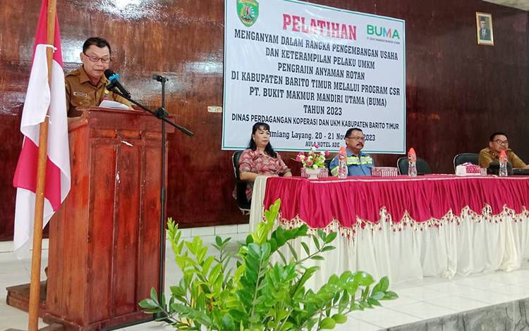 Saat membacakan sambutan Pj Bupati Barito Timur, Asisten III mengharapkan pelatihan melalui program Corporate Social Responsibility (CSR) perusahaan itu dapat mendorong upaya pemberdayaan masyarakat khususnya pelaku UMKM untuk mewujudkan struktur ekonomi yang kokoh.