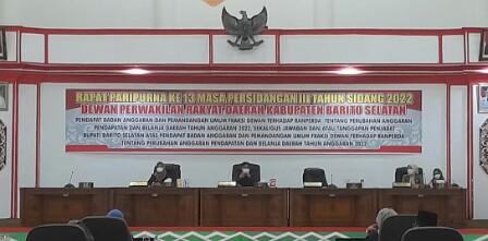 Buntok – Ketua DPRD Kabupaten Barito Selatan (Barsel) Ir. HM Farid Yusran, MM usai memimpin rapat paripurna 13 mengatakan agenda yang disampaikam Pendapat Badan Anggaran (Banggar) dan Pemandangan Umum Fraksi Dewan terhadap Rancangan Peraturan Daerah (Raperda) tentang Perubahan Anggaran Pendapatan dan Belanja Darah (APBD) Tahun Anggaran 2022.