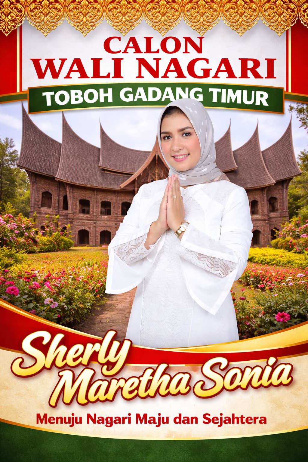 Sherly Maretha Sonia, mantan Cik Uniang Cik Ajo Padang Pariaman tahun 2012 maju menjadi Calon Wali Nagari Toboh Gadang Timur, Kecamatan Toboh Gadang – Sintuak, Kabupaten Padang Pariaman.