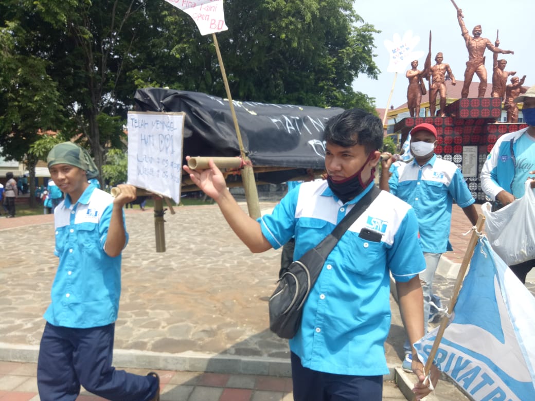 Mereka menuntut untuk membatalkan pengesahan Undang-Undang Omnibuslaw Cipta Kerja oleh DPR RI karena dinilai sangat tidak berpihak kepada para pekerja buruh.