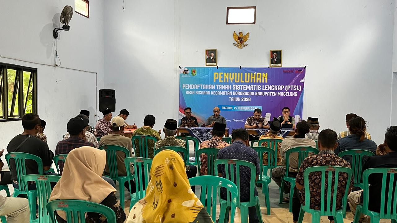 MAGELANG – Warga Desa Bigaran, Kecamatan Borobudur, Kabupaten Magelang, Jawa Tengah, antusias mengikuti sosialisasi Pendaftaran Tanah Sistematis Lengkap (PTSL) yang digelar Kantor BPN Kabupaten Magelang, Jumat (27/2/2026).