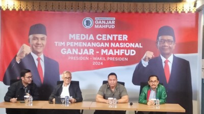 Wakil koordinator Wakil Ketua TPN Ganjar-Mahfud Andika Perkasa bersama Aria Bima dan Usman M. Tokan,…