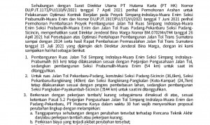 Surat Kepala BPJT Danang Parikesit yang menangguhkan pembangunan Jalan Tol Padang Pekanbaru Seksi Sincin –…