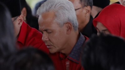 Ganjar Pranowo terlihat berdoa di makam Bapak Bangsa Ir Soekarno di Blitar, Jumat (3/11/2023). Dalam…