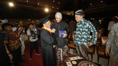 Capres Ganjar Pranowo menghadiri Dies Natalis ke 74 Universitas Gajah Mada (UGM), Selasa (19/12). Pada…