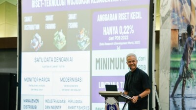Capres Ganjar Pranowo bicara di acara Himpunan Alumni IPB di IPB International Convention Center, Bogor,…