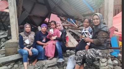 Lima Jam Menempuh Jalan Bebatuan, Tim WAG Top100 Capai Sasaran Bantuan Gempa Pasaman