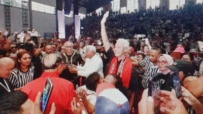 BACAPRES Ganjar Pranowo disambut meriah oleh warga asal Maluku saat Deklerasi Maluku voor Ganjar-Mahfud di…