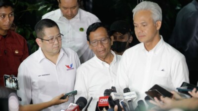 Calon Presiden RI Ganjar Pranowo menyampaikan sikap Ketua Umum PDIP Megawati yang meminta melawan setiap…