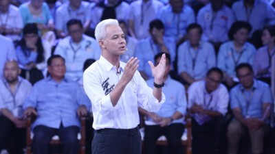 Gaya Capres Ganjar Pranowo di acara Debat Capres KPU RI, Selasa (12/12) malam membuahkan hasil…