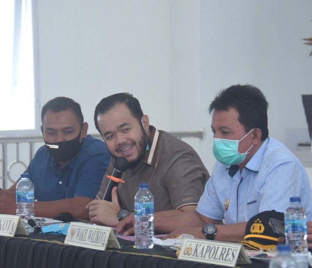 NORMAL BARU – walikota Padang Panjang H. Fadly Amran didampingi Wakilnya Asrul saat video confrence…