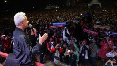 Momen Capres Ganjar Pranowo bertemu ribuan masyarakat pada acara Hajatan Rakyat Semarang, Jumat (26/1/2024). Dalam…