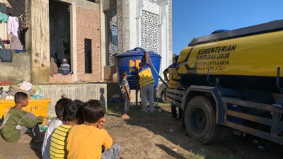 Kementerian PU menyalurkan bantuan sarana air bersih bagi korban bencana alam di Aceh (foto :…