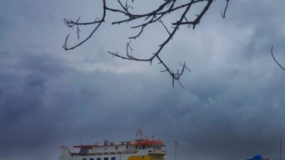 Foto kapal feery dan cargo yang selamat akibat terjangan cuaca ekstrem di Kendari. (Foto :…