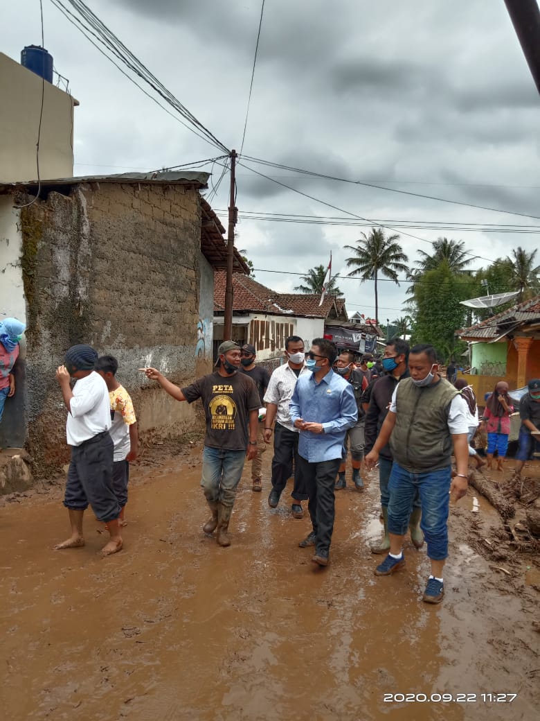 Dewan Perwakilan Rakyat Daerah (DPRD) Kabupaten Sukabumi, Tedy Setiadi melalui anggota Komisi II meninjau lokasi banjir serta memberikan bantuan dan arahan penanganan kepada warga Kampung Cibuntu Desa Pasawahan, Kecamatan Cicurug, yang salah satunya terkena dampak banjir.