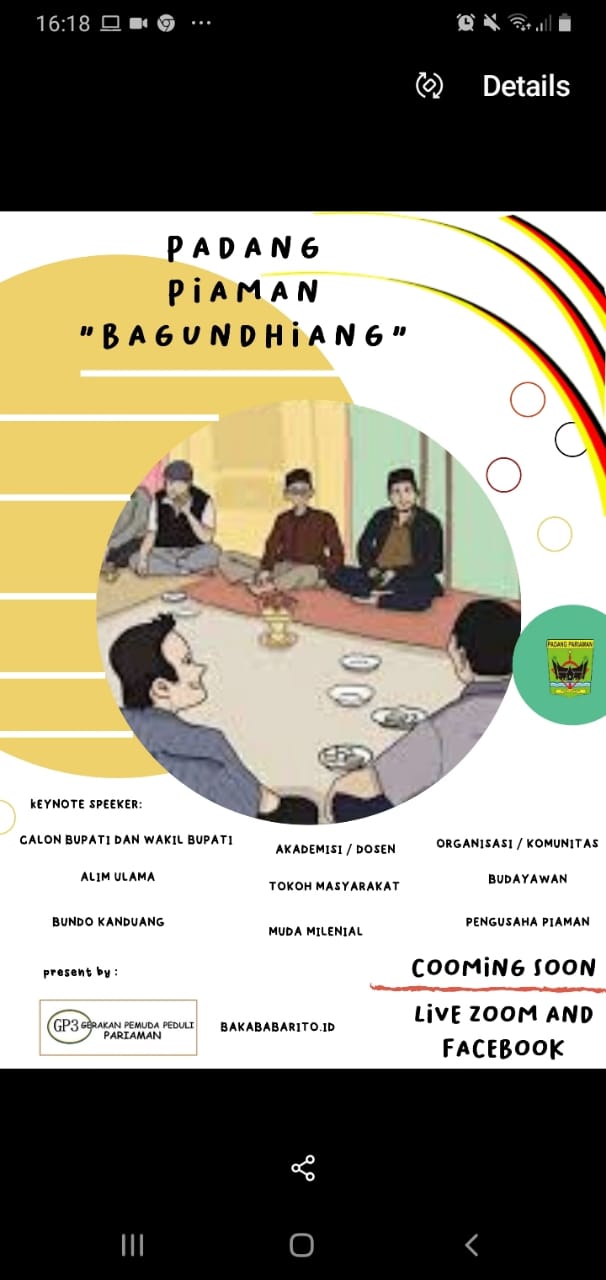 Ketika dihubungi via telepon, Ilham yang putra Sungai Limau ini menjelaskan. Kegiatan dialog dan diskusi yang dilaksanakan melalui video confrence dan zoom meeting ini, bertujuan mengembalikan tradisi “Baghundiang” dalam setiap gerak pembangunan di kabupaten Padang Pariaman.