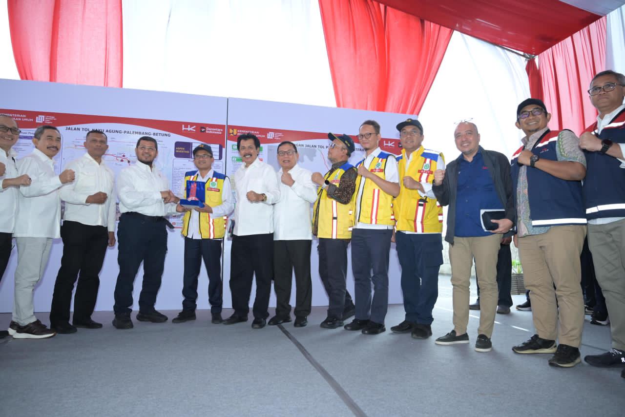 Anggota Komisi V DPR melakukan peninjauan lapangan ke ruas Tol Palembang – Betung, Rabu (12/2/2026) yang ditandai juga dengan penyerahan cendera mata. (Foto : Corcom HK/awe/HI)
